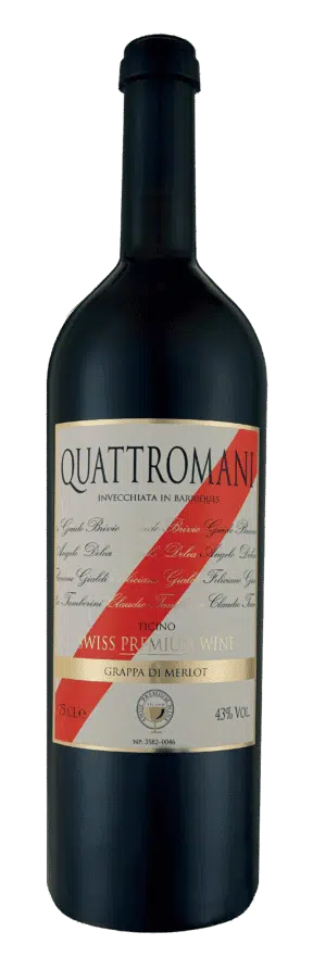 Beschreibung: Die Grappa Quattromani 43% repräsentiert die Exzellenz der Tessiner Tradition. Entstanden aus der Zusammenarbeit von vier historischen Kellereien (Brivio, Delea, Gialdi und Tamborini), wird sie aus ausgewählten Merlot-Trauben hergestellt und lange im Holzfass gereift. Komplex, raffiniert und harmonisch, vereint diese Grappa Kraft und Feinheit und bietet ein umfassendes und besinnliches Sinneserlebnis. Ein Destillat, das die Weinbaukultur des Tessins mit Eleganz und Langlebigkeit feiert.